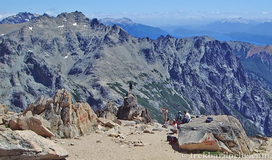 From the Cerro Catedral resort car park head to the ticket office to purchase you lift ticket. Take the Gondola 'Amancay' then the 'Diente de Caballo' chairlift to the top; follow the track about 1km as it that gradually ascends, with the last 100m of steeper ascent over loose scree to the pass. Ascent $590 (Dec 2018) check times and days it operates: lift details. When you purchase your lift tickets you will probably be asked to sign a register so they have a record of who is doing the trail - this is different from the free/obligitory National Park trekking.