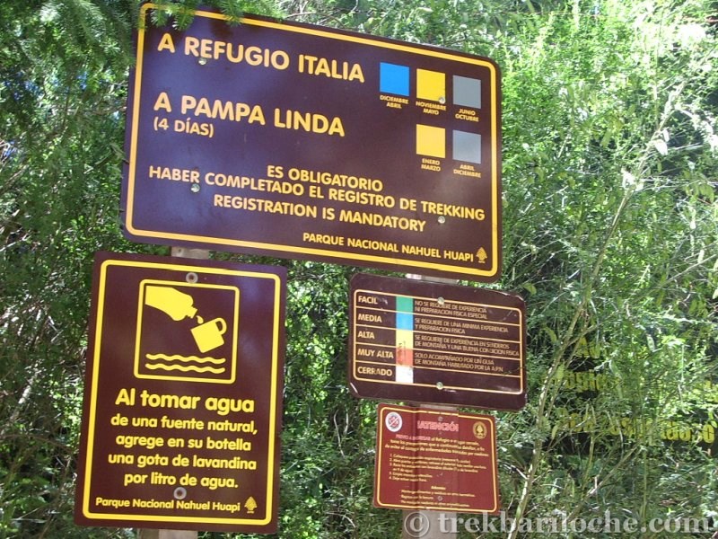 Before heading into the mountains check up-to-date trail info, & register your trek intentions with the National Park office in Bariloche, Pampa Linda or online.
